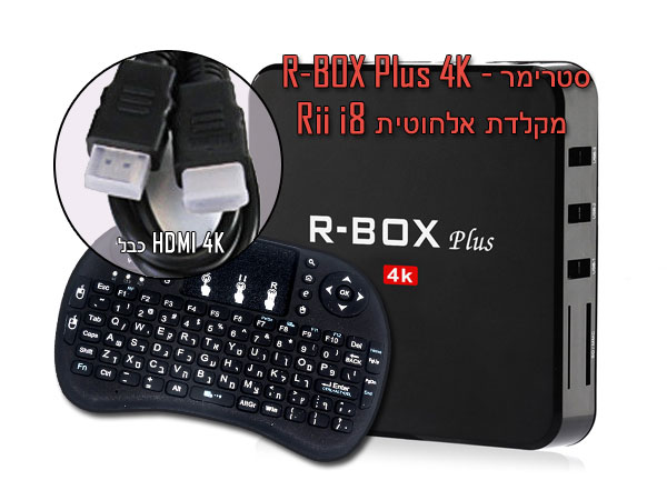 סטרימר – R-BOX Plus 4K + מקלדת אלחוטית Rii i8.