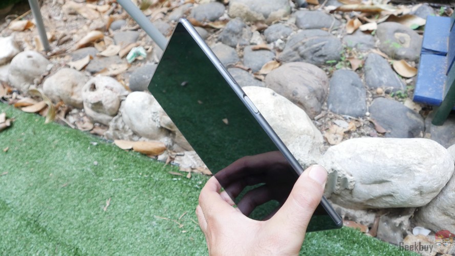 בצידו הימני של הטאבלט נמצאים כפתורי הווליום וכפתור ההפעלה שהוא מעט שקוע פנימה, כפתור ההפעלה גם כולל בתוכו סורק טביעת אצבע.
