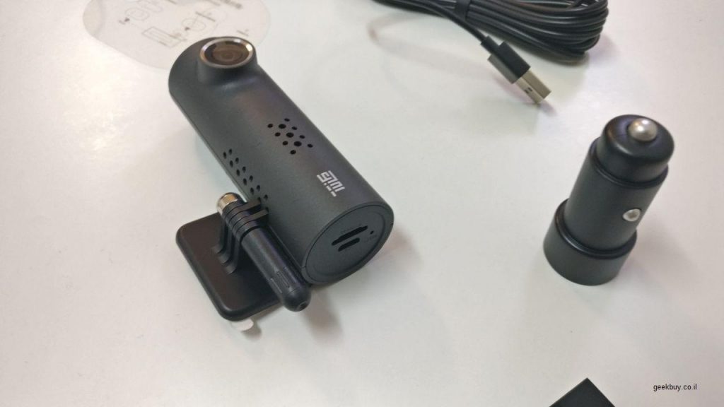 המצלמה מגיעה עם כל מה שצריך, כבל ארוך מאוד (3.5 מטר), חיבור מצת עם כניסת USB ספר הוראות ומתקן הרכבה לשמשה הקדמית.