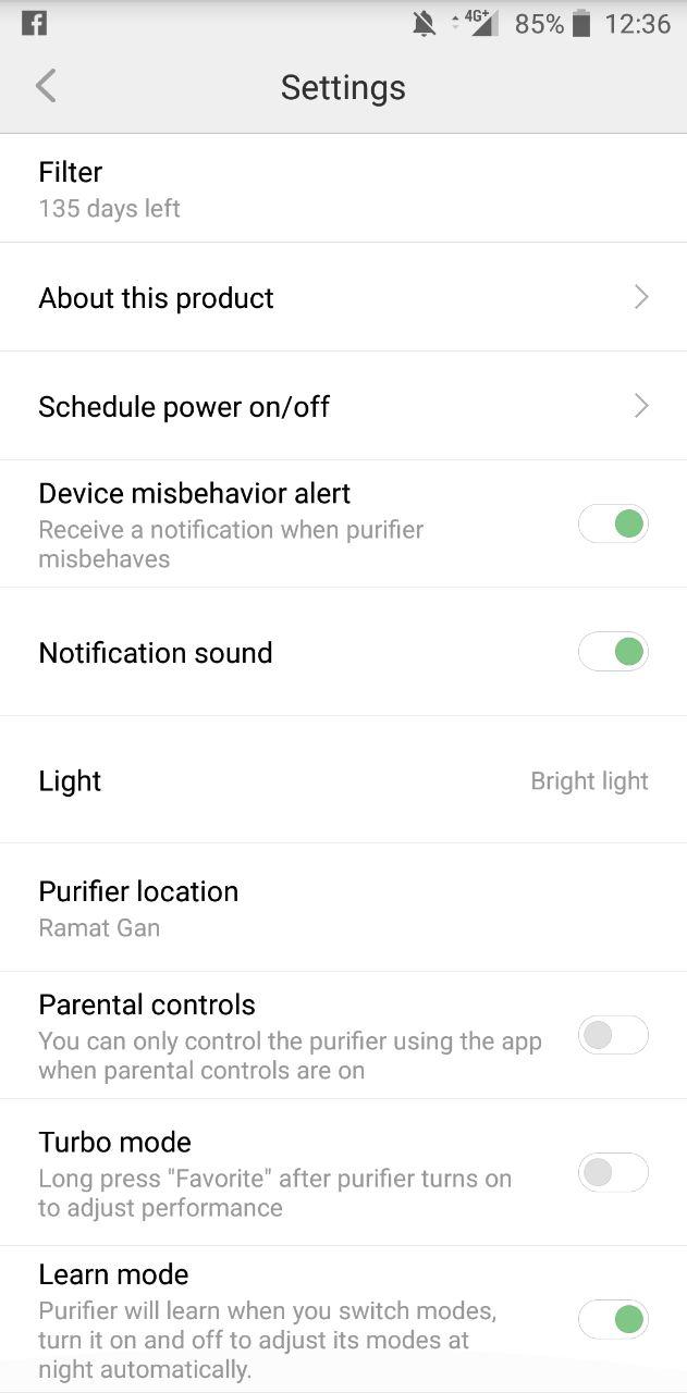 האפליקציה מאוד אינפורמטיבית ונוחה יש מגוון הגדרות שניתן לשחק איתן אבל בגדול אין הרבה מה לגעת, רוב הזמן המכשיר על מצב אוטומטי אבל תוכלו להיכנס לאפליקציה ולראות מידע על איכות האוויר, כמה אוויר נקי פולט המכשיר בכל רגע וכמה הוא תרם לכם עד היום.